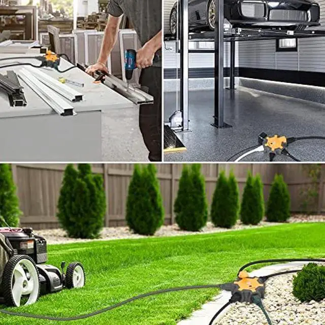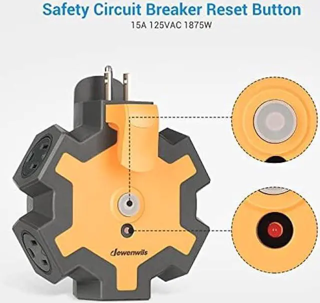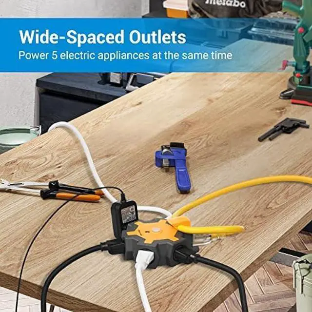 5-Grounded Outlets The outlet extender fits with any indoor, outdoor extension cord well, great to expand one outlet to six in work places. 5 outlets (125V/15A/1875W) with wide space, allows you use bulky adapter plugs in workshop