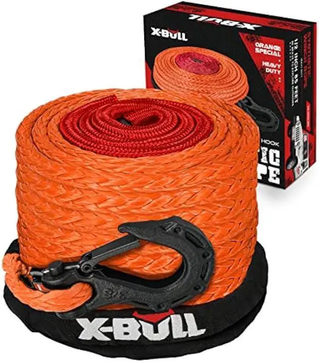Heavy Structure: Braided by X-BULL SPECIFIC STANDARD 12 strands of Ultra High Molecular Weight Polyethylene (UHMWPE) Synthetic Fiber, which can provide a Tensile Strength of 32, 000 lbs, covered with Polyester Coating. It weighs only 1/3 of the steel cable, and will never rust.