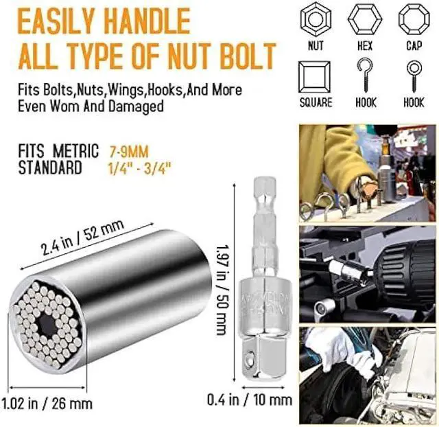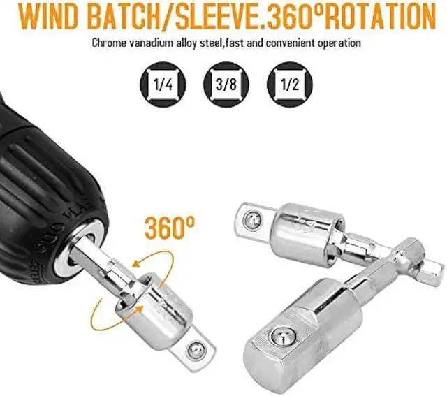 360° Rotatable Impact Driver Bit Set360° Rotatable Hex Shank Socket to Bit Adapter 1/4 3/8 1/2 Impact Driver Adapter, with special spherical design, can evenly distribute the torque load in Larger surface area for improved performance, convenience and effort.