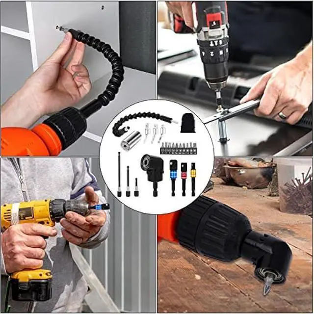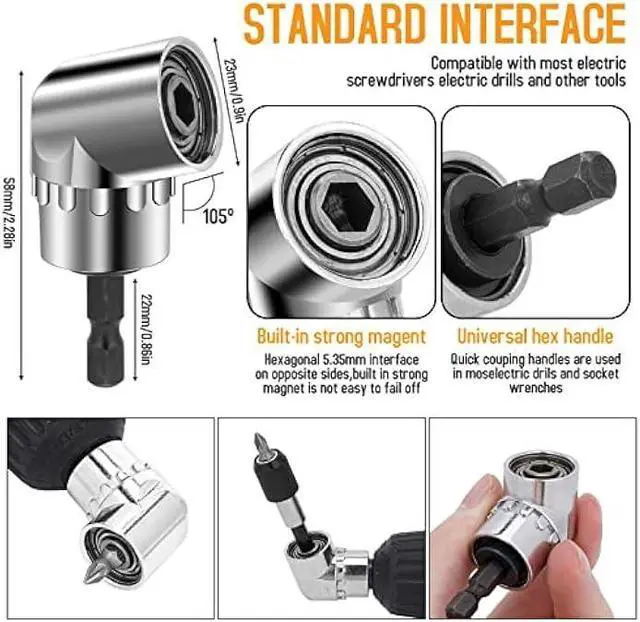 105° Right Angle Drill Bit ExtensionIt comes with a 105° right angle drill bit, suitable for drill bits, cordless drills or hand wrenches and screwdriver chucks. Made of high-quality aircraft carrier steel raw materials, fast, high-hardness angle steel drill frame, quick replacement, rust-proof. Specially designed for computer cases, electrical cabinets and other screwdrivers that work in tight spaces.