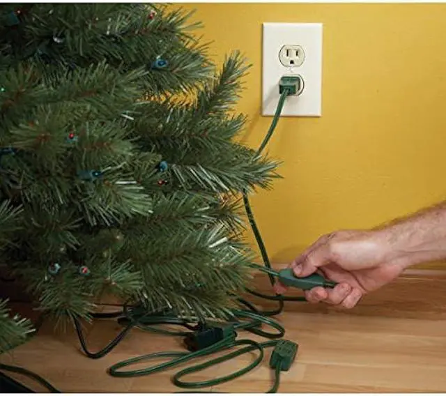 18-gauge/2-conductor Christmas tree extension cord Features (3) 3-outlet taps in-line along the cord for a total of 9-outlets When used up the trunk of a Christmas tree, the cord provides outlets through center of the tree