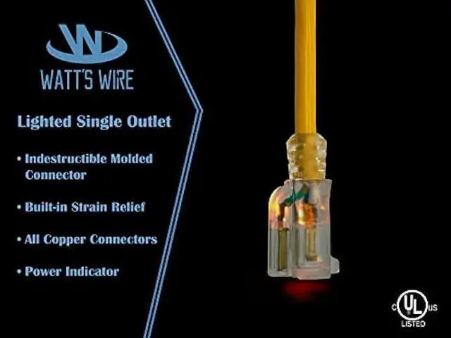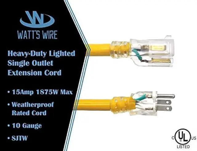 Watts Wire's Grounded 10-Gauge (10/3) 10-foot Lighted w/ Ground Extension Cords are the perfect cord all around. Our cords are designed around the contractor and perfect for the hobbyist.