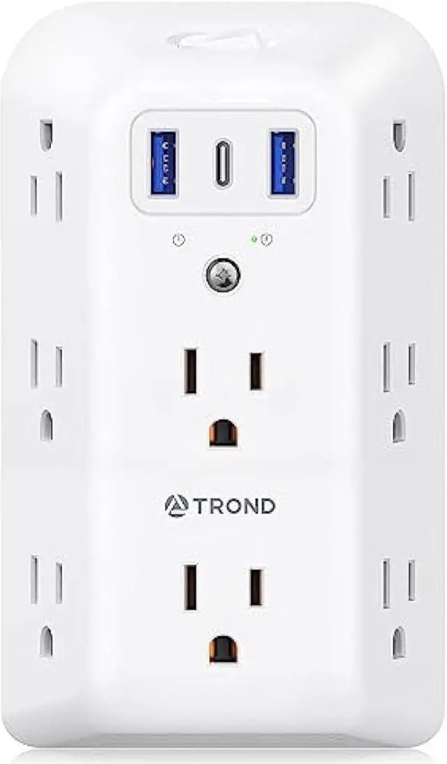 Wall Outlet Surge Protector: With 1440 Joules surge protection, this multiplug wall plug could safeguard your tv, computer, laptop or other appliances from power surges, creating peace of mind. 3 complementary Surge Protection Circuits, TVS (transient voltage suppressor) MOV (metal oxide varistor) GDT (gas discharge tube), with response speed less than 1Ns, and made of the top-grade ul94 v-0 flame-retardant material.