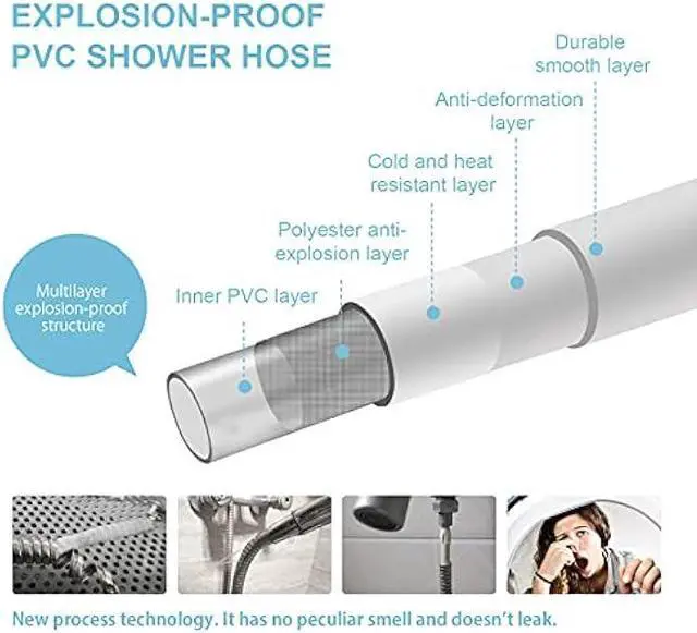 [Premium Shower Hose] Our shower head hose is made of high quality PVC outer tube, PVC composite inner tube and precision machined with A-grade forged brass, which is high temperature resistance, explosion-proof, sealing, leak-proof, high flexibility and durable.