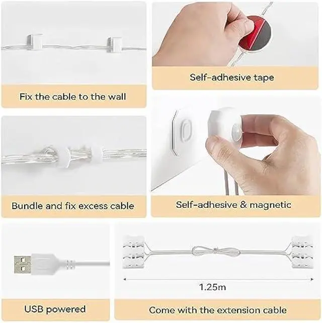 Cuttable and Connectable - Come with 1 extension cord, 2 connectors, 6 holders, 3 cord wraps and some extra tape, you can easily bypass obstacles and fix the puck light in the desired position, DIY ideal lighting for your cabinet. Easy to install and take down. The distance of each puck light is 1.3 ft, you can adjust the distance with the included accessories.
