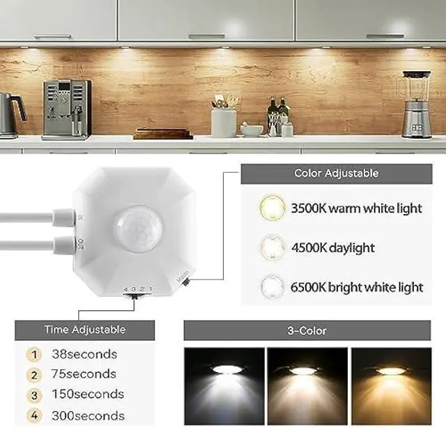 3 Color Cozy Light - There are 3 different white light to choose, bright white light (6500K), daylight (4500K), warm white light (3500K), just push the Mode button to set the color you like for different scenes. Bright and cozy lighting illuminates every corner, help you pass through the dark hallway at night.