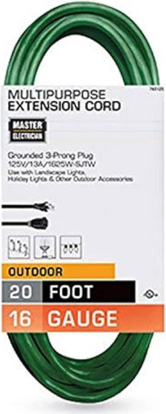 Green vinyl jacket, resists oil, grease, moisture, and abrasion 3-conductor, 16-gauge wire, 13-amp rating Medium duty, small drill, jig saw, and sump pump Heavy-duty molded on plug ends with strain relief Ul listed and meets osha specifications