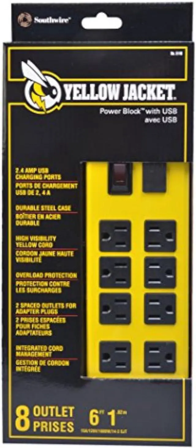 HEAVY DUTY metal housing makes this 8 outlet power block perfect for use in your workshop or any other rugged work area
