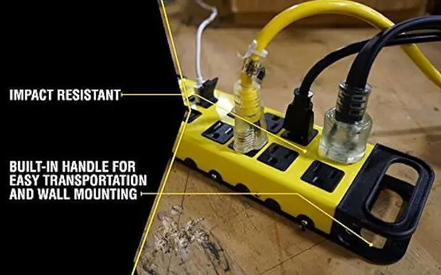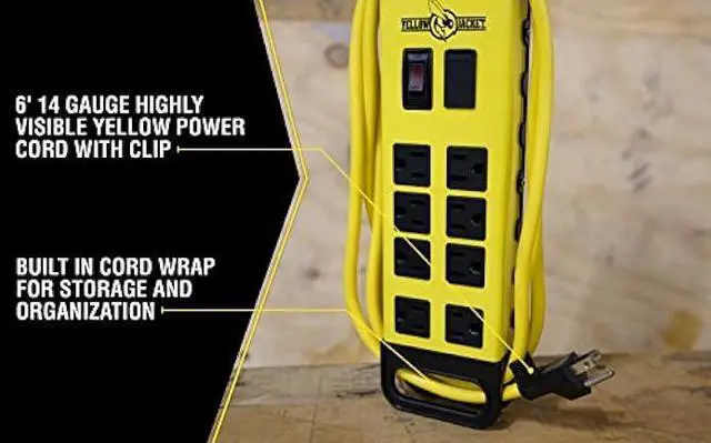HIGHLY VISIBLE 6 foot; 14 gauge yellow power cord with clip; adds extra safety and prevents tripping