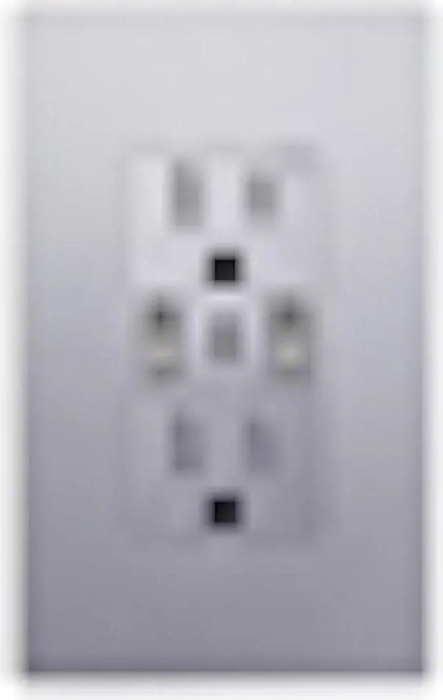 Decorator receptacle features tamper-resistant shutters to prevent unwanted objects from being inserted; complies with 2017 NEC Article 406.12