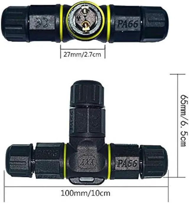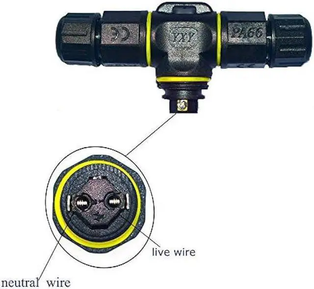 ELECTRIC SAFETY 3 way 2 wires electric junction box/electrical connector 2 pins for cable size: Ø 0.18 - 0.39 inch ( 4.5 -10 mm) -support Low DC & High A/C Power waterproof connector, our waterproof connector can be used for 2core