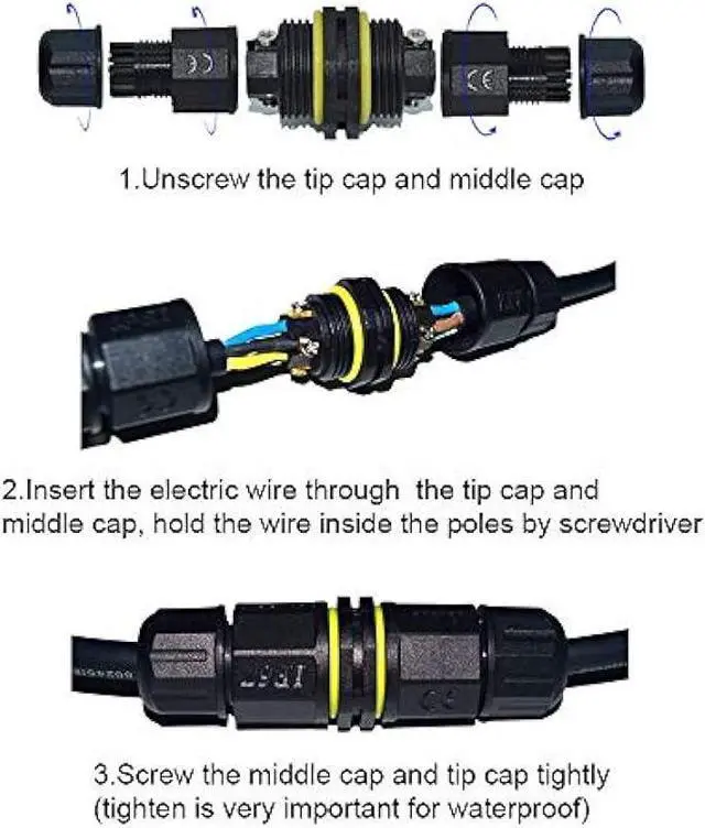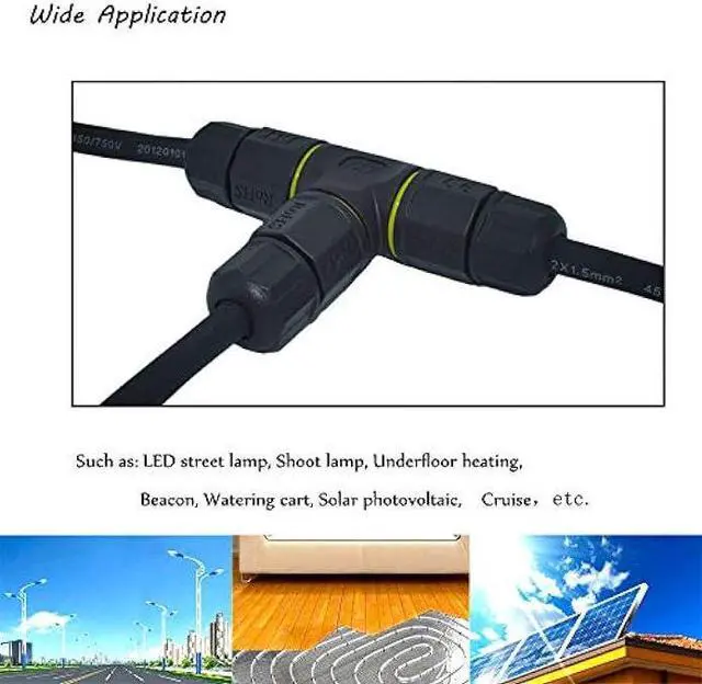 WIDE USABILITY This IP68 box/electrical connector 3 pin/wire junction connector can be used to repair and extend power cables. And the electrical junction boxes are suitable for safe DIY fast connection to the outdoor lighting, external wiring, displays/ lawn/garden/billboards/ tunnel/road landscape, and the perfect further applications in use for solar water heaters, various machinery, and equipment
