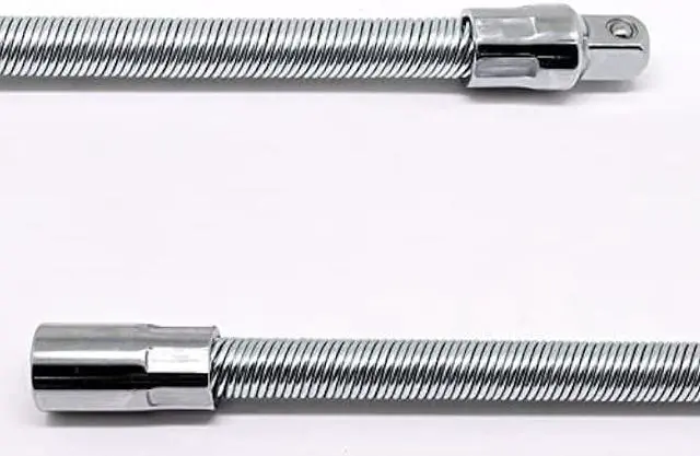 Features: These socket extensions add extra length and flexibility, giving you access to hard-to-reach nuts and bolts, perfect for loosening or tightening fasteners in tight spaces. In addition, the flexible sleeve extensions feature a flexible spring-loaded shaft that can bend into multiple positions and around obstacles or tight compartments, so you can apply torque from any angle to tackle jobs that rigid extensions can't solve.