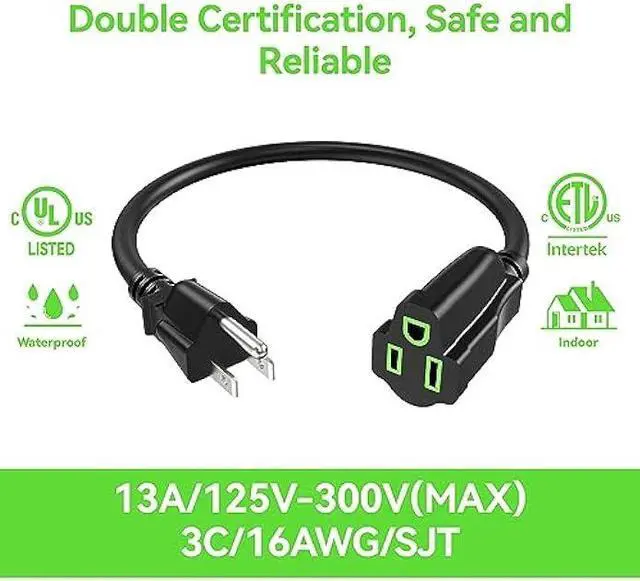 : Standard 3 Prong plug, 16AWG pure copper core, SJT, 3C, FT2, 13Amp, 125V-300V (MAX)