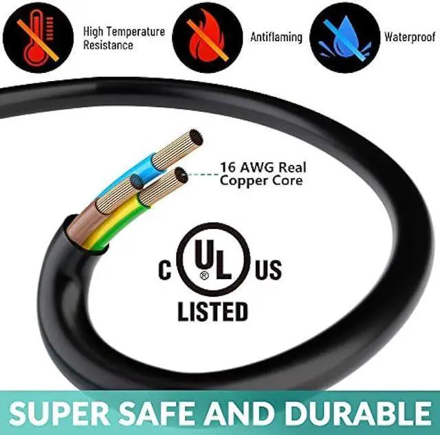 Heavy Duty Power Extension CableElecan SJTW AC power cable is UL Listed, approved 13A / 125V / 1625W, Main cable and the splitter cables are all SJTW 16 AWG(3× 1.31 mm2), with a standard NEMA 5-15P grounded power plug connected into NEMA 5-15R x 2 Heavy duty receptacles, super thick and durable; 13A rating easily supports your power needs.