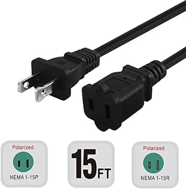 [AWG #16 copper wire] 2-Prong Nema 1-15P [Polarized] male to Nema 1-15R [Polarized] Female power extension cable.