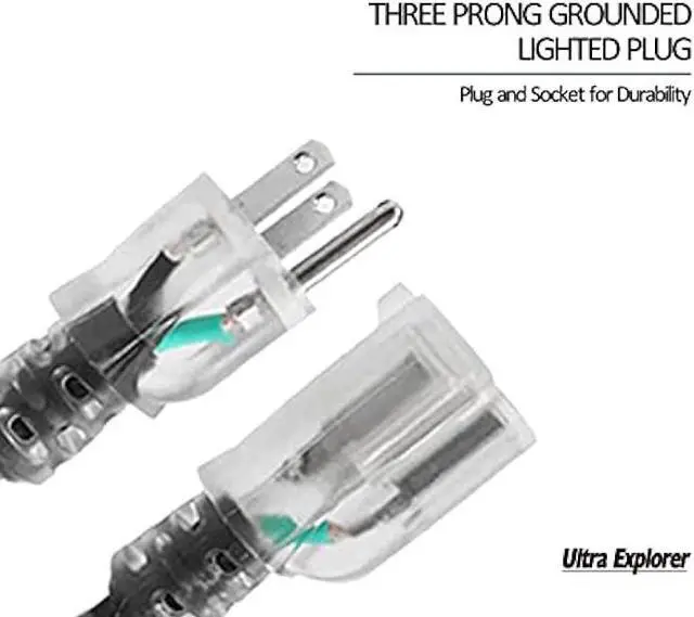 Safe Cable - UL Listed, 3 prong grounded plug for added safety. Reinforced blades protect prongs from bending or breaking. Remain flexible and tangle-free under all weather conditions and wouldnt become stiff or crack in cold weather.