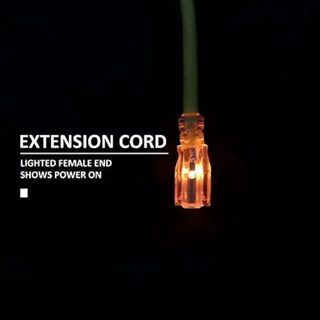 Lighted Extension Cord End - LED indicator lights up when the cord is powered to let you know the triple tap extension cord is ready to use and easy to be found in the dark.
