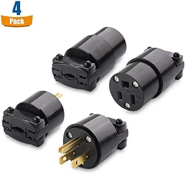 Cost-effective 4 pack of grounded 3 prong plug and connector replacements provides spare electrical cord ends for an emergency repair in your garage