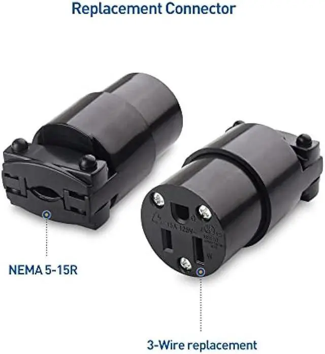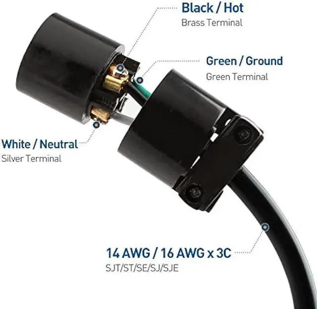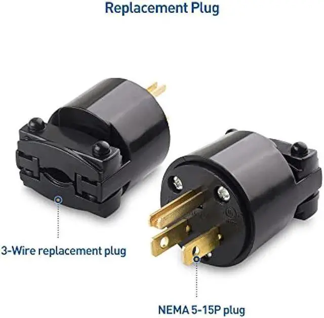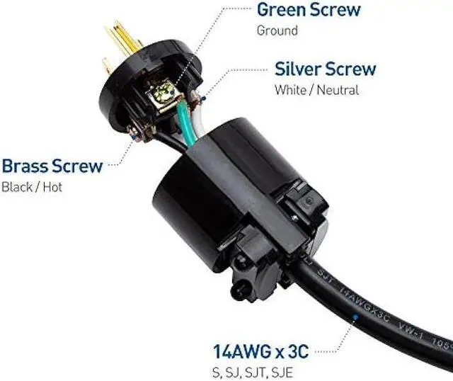 AC plug is compatible with 14 AWG / 16 AWG stranded copper wire for indoor, residential applications; Replacement wire plug end fits STJ/ST/SE/SJ/SJE cord jackets