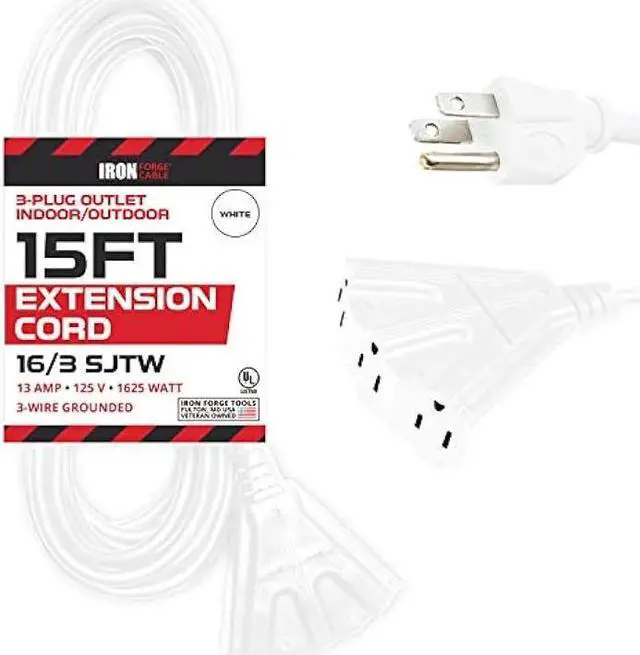 UL Listed. 3 wire extension cord, 15 foot, 13 amp, 125 volt, 1625 watt.