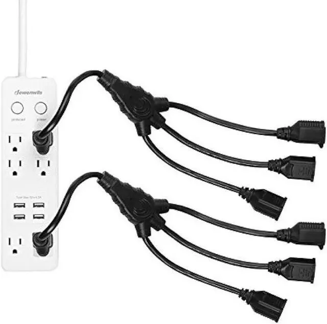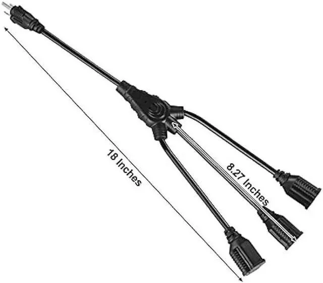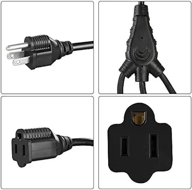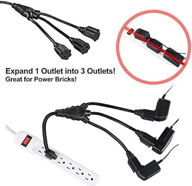 POWER CORD SPLITTER (3-PACK): AC 125V/13A/1625W power rated; black extension cord with triple outlets save sockets and maximize the usage of power strips & wall outlets; 3-way power splitter can extend in different directions, which is great for power adapters and bulky plugs; NEMA 5-15P to NEMA 5-15R x 3