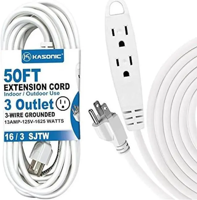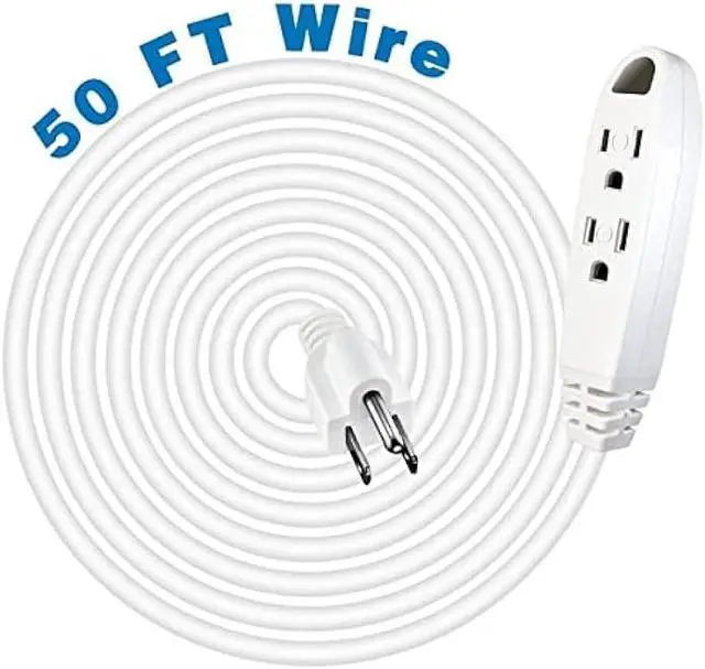 THREE OUTLETS - Plug in 3 appliances at once and have a 50 ft wire to the wall outlet. 3-Wire Grounded, 13 Amp 125V 1625 Watts, Like a mini power-strip with a long cord.