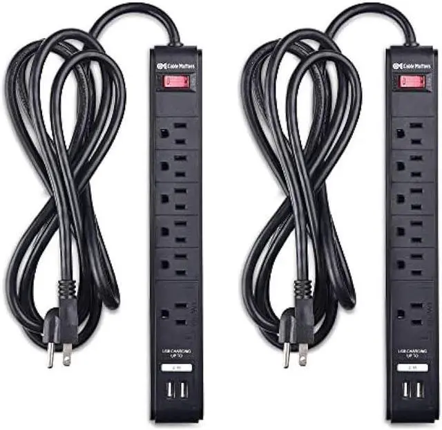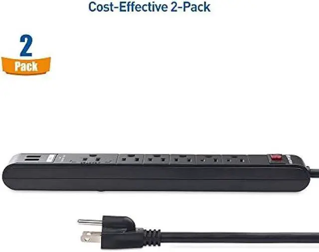 Cost-effective 2 pack surge protector power strip with usb ports convert any standard grounded AC outlet into multi plug outlet; Clean-up counter clutter and never forget where you left your phone with one centralized location for charging with this power outlet extender