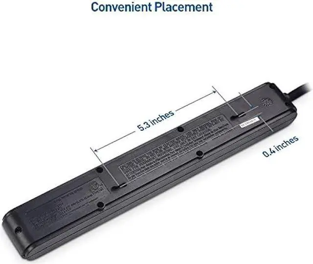 8 feet power strip with long cord is easy to handle and coil when not in use; Molded strain relief on the plug of these power strips with surge protection provides long life and durability; Includes a surface mounting template for installing on a wall or under a desk
