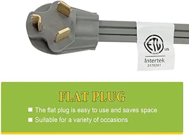 Flat Plug - The heavy duty dryer cord can fit with the wall, saving space, can also be used in narrow places