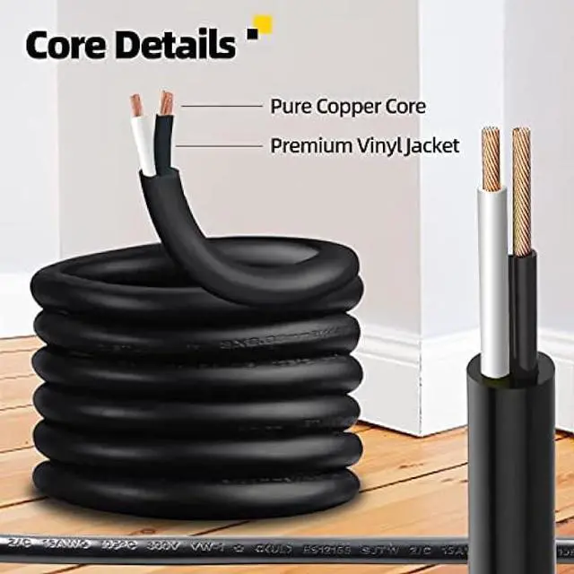 Heavy Duty Extension Cord Double-insulated cord and one-piece molded plug provide extra durability, premium vinyl jacket protects against moisture, dust and dirt to improve longevity.
