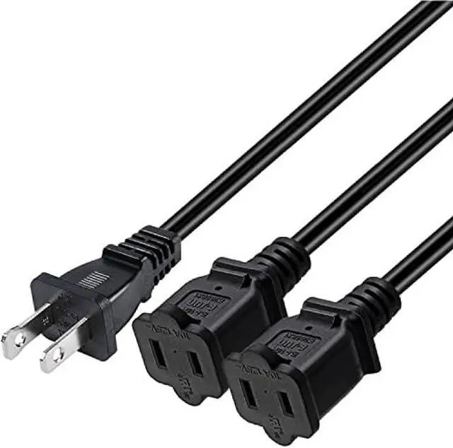 NEMA 1-15P to 2x NEMA 1-15R Power Cord Splitter Cable, Power two device with single outlet using our Y-Splitter power cord.