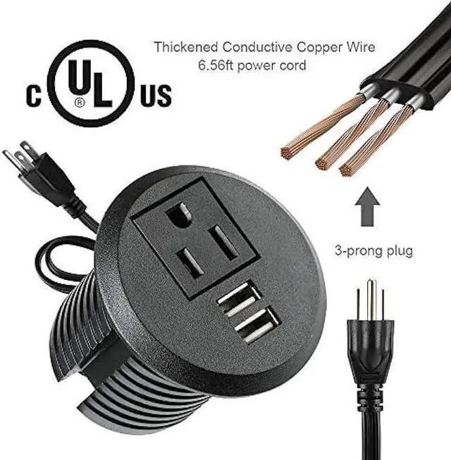 Maggie's table recessed power grommet socket adopting anti-fire ABS, PC materials and PVC copper cord.