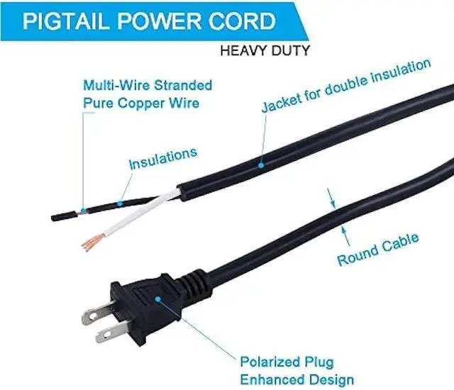 Round Cable style ( OD 0.32 in / 8.1 mm ), suitable for outdoor landscape lighting, power tools