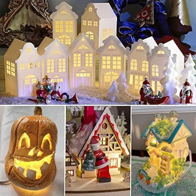 Easy to Installation 6 foot long white cord with adjustable plastic clip lights and turn on/ off switch, allow you can fix C7 small lights for crafts and control the light easily, plug in christmas village house lights and ready to use. Night light cord with clip for lamp Christmas villeag houses, Halloween pumpkins, lighting ceramic houses, trees, or any craft project.