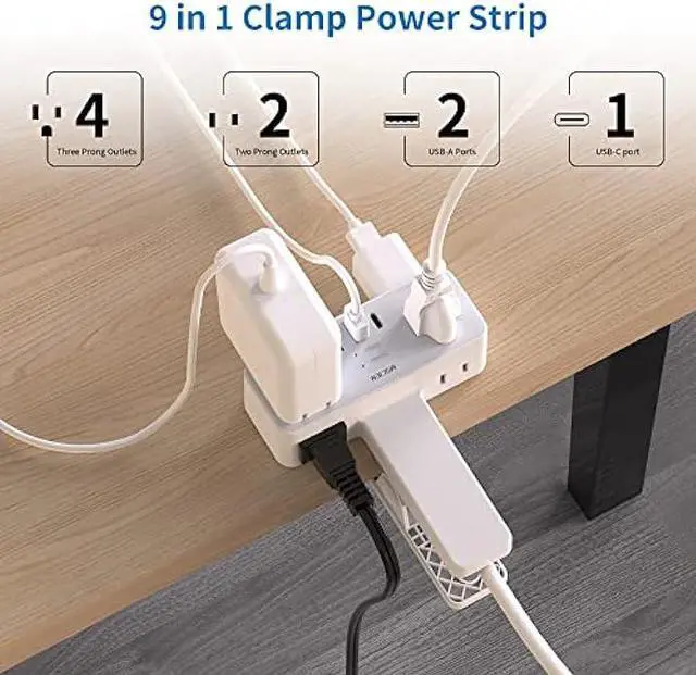 9-in-1 Desk Power Strip with USBOutlet extender comes with 1 USB-C ports & 2 USB-A ports & 6 AC outlets, and allows you to simultaneously charge multiple devices.