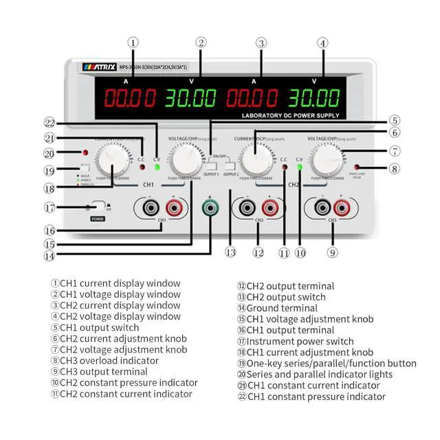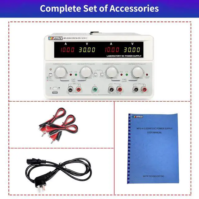 Superior Quality & Warranty: MATRIX linear power supply is designed for a wide range of applications such as laboratory, electronic repair, DIY projects, communication equipment maintenance, product assembly lines, scientific research, and educational institutions. Each lab power supply undergoes rigorous quality testing and calibration before it leaves our factory, ensuring its exceptional quality. We offer a 3-year warranty and please reach out to us in case of any issues.