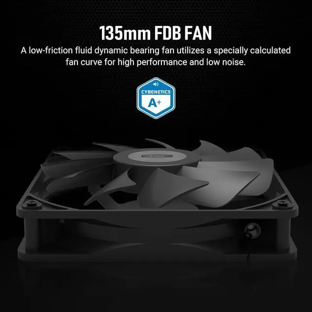 135mm FDB FANUse Fluid Dynamic Bearing (FDB) Fan to effectively reduce wear and bring long-lasting stability, taking into account outstanding heat dissipation performance and low noise performance. Supports Zero RPM Fan Mode, the fan stops at low temperature and light load.