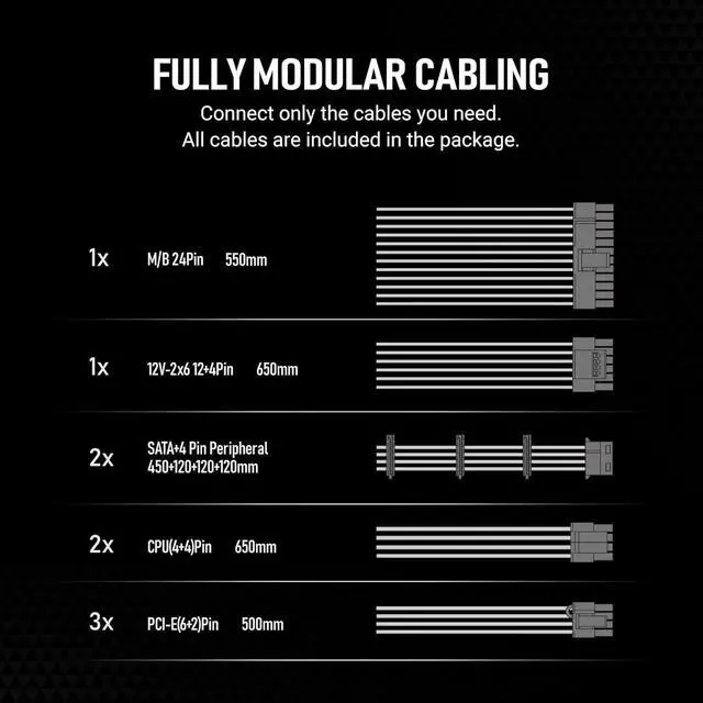 Fully ModularThe fully modular power supply allows use of only the cables you need for reduced system clutter and improved air flow.