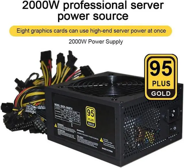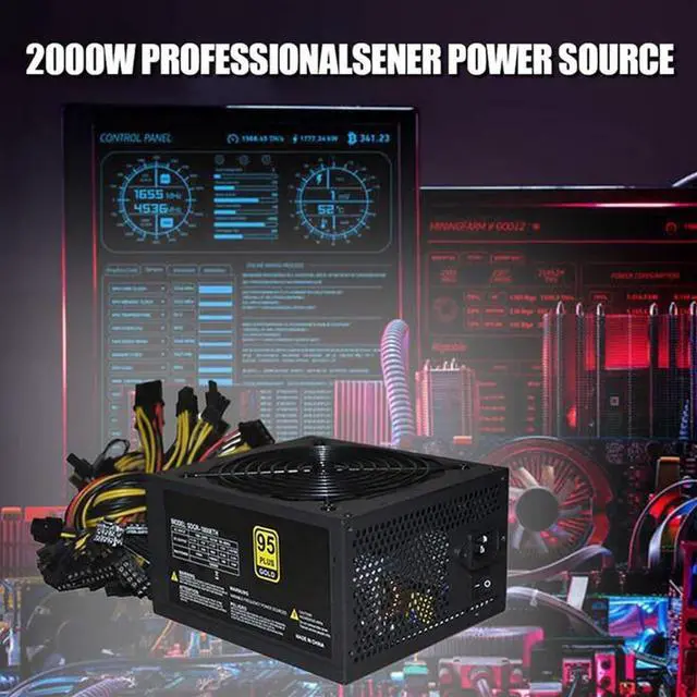 ETH Mining 1800W Rated Miner Power Supply 95% Efficiency ATX Mining Power Source Support 8 GPU Card Max Up to 2000W Supply