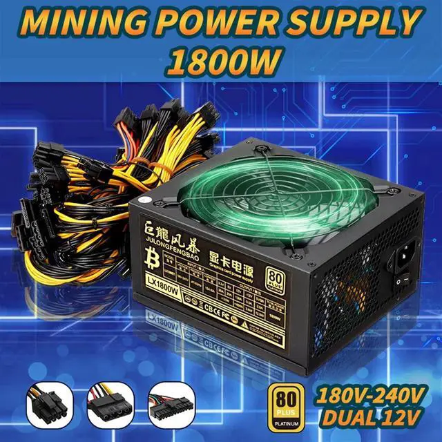 1800W Mining Power Supply Miner Graphics Card for Mining 180~240V 80+ Platinum Certified ATX PSU 20+4pin