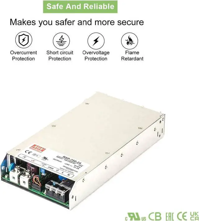 The FerroFab RSP-750-24 is a 751.2W single-output enclosed AC-DC power supply designed to meet the stringent requirements of telecommunications equipment and network infrastructure. Its high efficiency, reliability, and robust design make it an ideal choice for powering critical communication systems. With a universal input voltage range of 90-264VAC, the RSP-750-24 provides a stable 24V output at 31.3A, ensuring consistent and reliable power supply to your telecom equipment. Its high 90.5% efficiency rating reduces energy waste and reduces operating costs, contributing to a more sustainable and Economical operation. The built-in DC fan provides forced-air cooling, effectively dissipating heat and ensuring reliable operation even in demanding environments and under heavy loads. This is crucial for maintaining the uptime and performance of your telecommunications equipment. (Please refer to the datasheet for detailed noise level specifications.) The RSP-750-24 incorporates a comprehensive suite of protection features, including short circuit, overload, over-voltage, and over-temperature protection. These safeguards protect your valuable equipment and ensure uninterrupted operation, reducing downtime and potential service disruptions. Designed for seamless integration into telecommunications infrastructure, the RSP-750-24 features a compact enclosed design and offers convenient features such as remote control and monitoring capabilities.