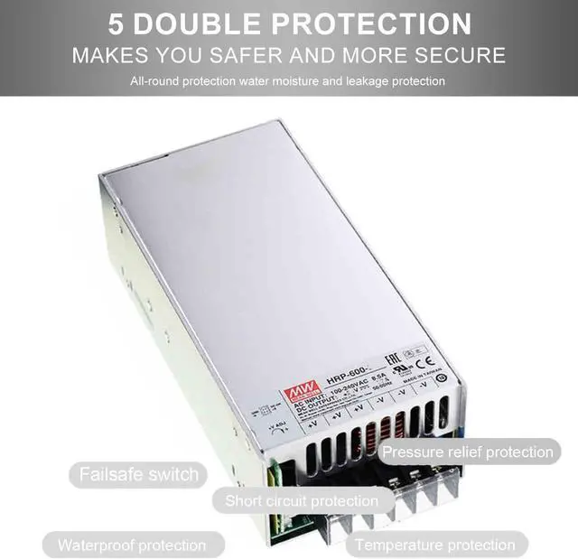 The TorqCali HRP-600-24 is a 648W single-output switching power supply designed to provide reliable and stable power for demanding office equipment. Delivering a consistent 24V DC output at 27A, this power supply ensures the uninterrupted operation of your critical office devices. Key Features for Office Applications: Reliable and Stable Output: The HRP-600-24 provides a consistent and reliable 24V DC output, ensuring the smooth operation of your office equipment. Comprehensive Protections: Built-in short circuit, overload, over-voltage, and over-temperature protections safeguard your equipment from potential damage. Continuous Operation: Designed for continuous use, the HRP-600-24 reduces downtime and Improves productivity in demanding office environments. Efficient Power supply: Active Power Factor Correction (PFC) Improves energy efficiency and reduces operating costs. Cooling System: The integrated cooling fan maintains optimal operating temperatures for reliable performance. (Consult the datasheet for noise level specifications.) Universal Input Voltage: The wide input voltage range (85-264VAC / 120-370VDC) simplifies installation and ensures global compatibility. Technical Specifications: Output Voltage: 24V Output Current: 27A Output Power: 648W Input Voltage: 85-264VAC / 120-370VDC Efficiency: Up to 88% Power Factor Correction (PFC): >0.93 Protections: Short Circuit, Overload, Over-Voltage, Over-Temperature Cooling: Integrated cooling fan Dimensions: 218 x 105 x 63.5mm The TorqCali HRP-600-24 is a reliable and efficient power solution for high-power office equipment. Its robust design, comprehensive protection features, and consistent performance make it an ideal choice for demanding office applications.