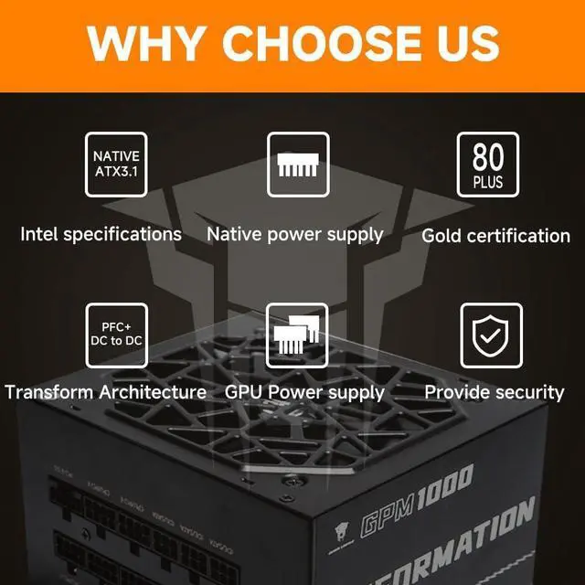 Gold Certified IDC-DC Architecture: PCIE 5.0 native power supply is equipped with native PCle 5.0 power supply connection and standard 12VHPWR 16-pin native cable, which can provide up to 600W of power supply support for PCIE 5.0 graphics cards and expansion cards^^More safe and reliable: three independent voltage regulators, multiple circuit protection, with low voltage protection UVP, over voltage protection OVP, over temperature protection