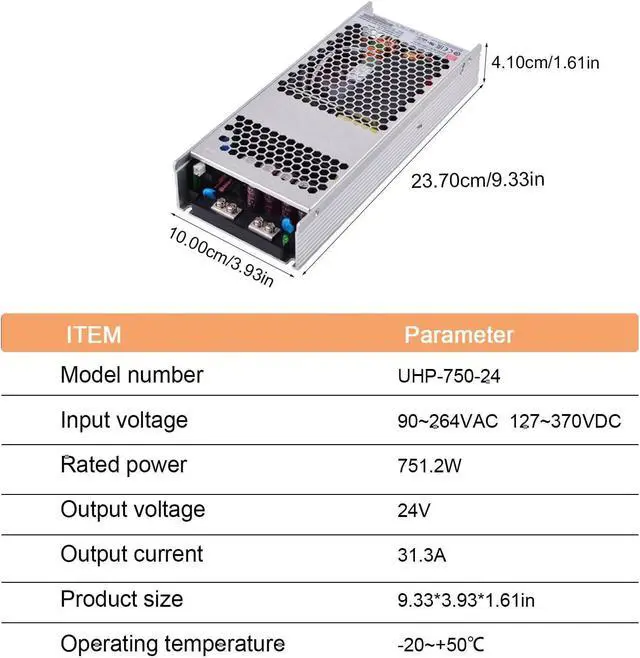 The MedInnov UHP-750-24 is a high-performance 751.2W industrial power supply designed for demanding applications. Its slim, 1.61-inch profile and fanless design make it ideal for space-constrained environments, while its 95% efficiency minimizes energy consumption and heat generation. The UHP-750-24 features a wide input voltage range (90-264VAC or 127-370VDC) and operates reliably in temperatures from -22°F to 158°F. Built-in protections against short circuits, overload, overvoltage, and overheating ensure long-lasting, reliable performance. This power supply is perfect for a variety of industrial applications, including automation machinery, control systems, electromechanical equipment, electronic instruments, and PoE power devices. The robust design and comprehensive safety certifications (UL62368-1, TUV BS EN/EN62368-1) make the UHP-750-24 a dependable choice for powering critical equipment.