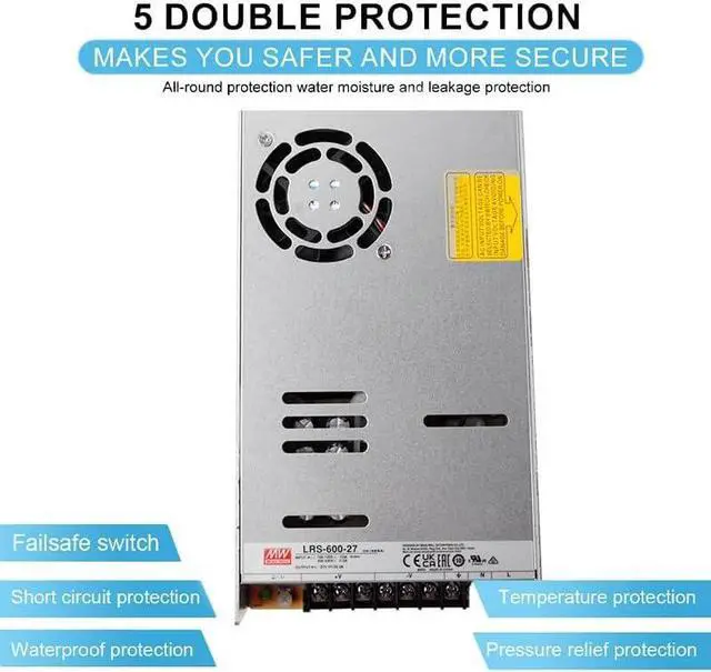 Low Noise: With an efficiency of 91% and low ripple and noise, the LRS-600-27 minimizes power loss, heat generation, and interference, ensuring accurate and stable performance in electronic instruments. (237 characters) ^^Precise 27V