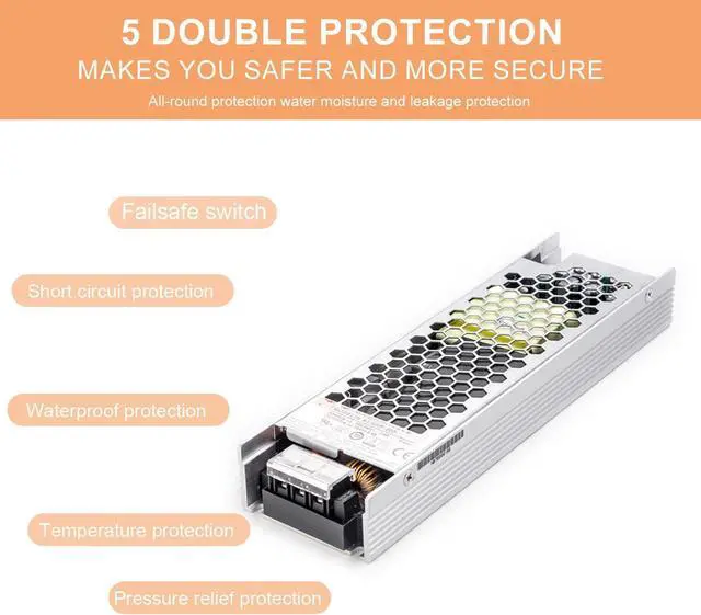 The MedInnov UHP-200-36 is a slim, fanless 200W industrial power supply delivering a stable 36V DC output at 5.6A. Its compact design, measuring only 7.64 x 2.17 x 1.02 inches, makes it ideal for space-constrained applications. With a wide input voltage range (90-264VAC or 127-370VDC) and high efficiency (94%), the UHP-200-36 minimizes energy consumption and operating costs. Built-in protections against short circuits, overload, overvoltage, and overheating ensure reliable performance and a long lifespan. This power supply is designed for demanding industrial environments, with an operating temperature range of -22°F to 158°F and the ability to withstand vibrations up to 5G. It's suitable for a wide range of applications, including industrial automation, control systems, and various electronic devices. The integrated LED power indicator provides convenient status monitoring.