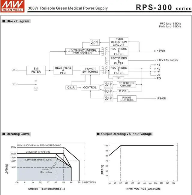 RPS-300 is a 300W highly reliable green PCB type medical power supply with a high power density on the 5 by 3 footprint.