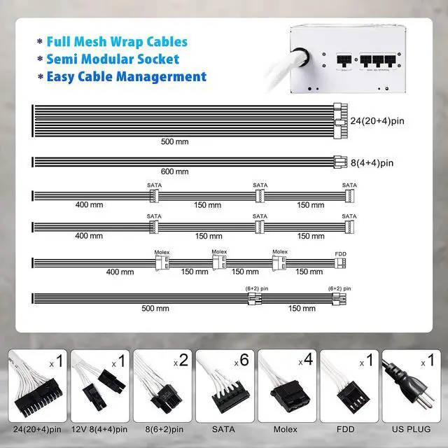 Semi modular, make installation and cable management easier, reduce clutter, enhance the air flow