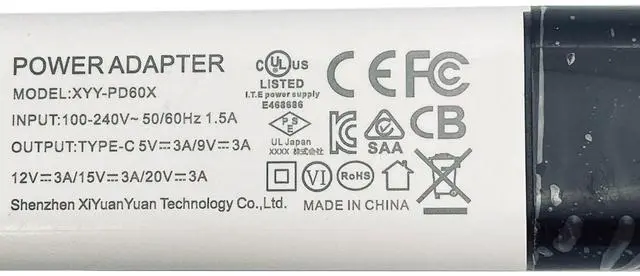 Output: 5V 3A / 9V 3A / 12V 3A / 15V 3A / 20V 3A